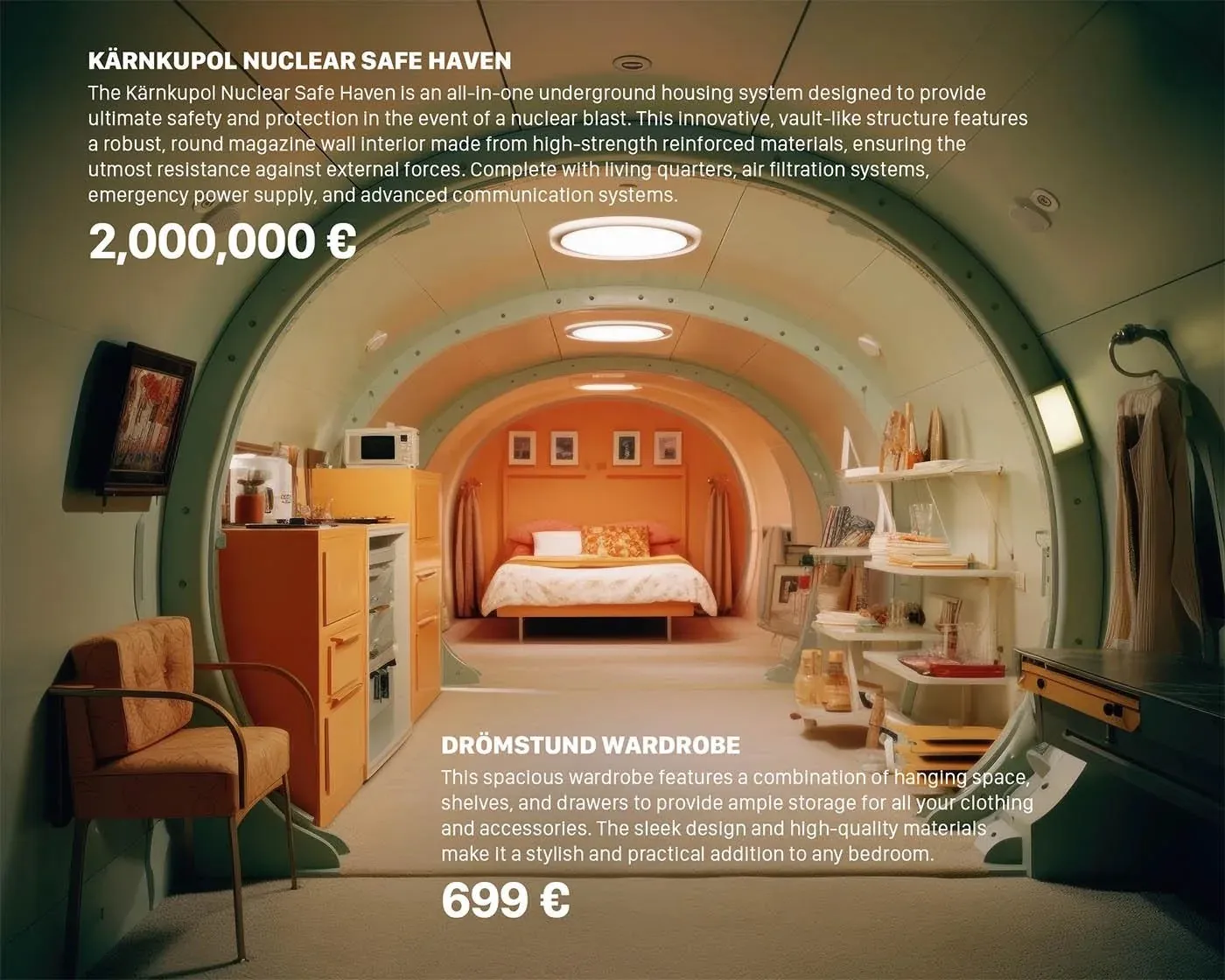 Midjourney generated IKEA anti-nuclear bomb shelter products
